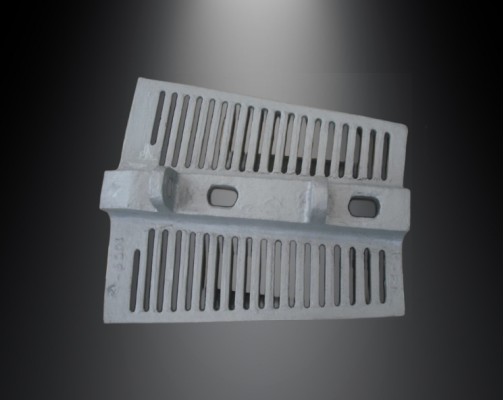 兩種金屬液熱復(fù)合鑄造,打擊面采用過共晶高路鑄鐵,具有兩種不同力學(xué)性能,耐磨性能好、韌性高的特點(diǎn),是普通Mn13Cr2材質(zhì)襯板的2.5 倍以上耐磨。
